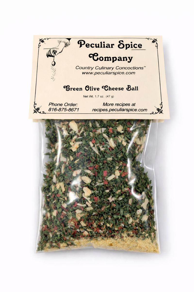 A great blend of dried vegetables and spices, all you add is cream cheese, chopped green olives, plus a little olive juice, and you have great a cheese ball. Or use it as a spread for crackers, bagels, or sandwich spread. Goes great with wine! Works with Black Olives also.